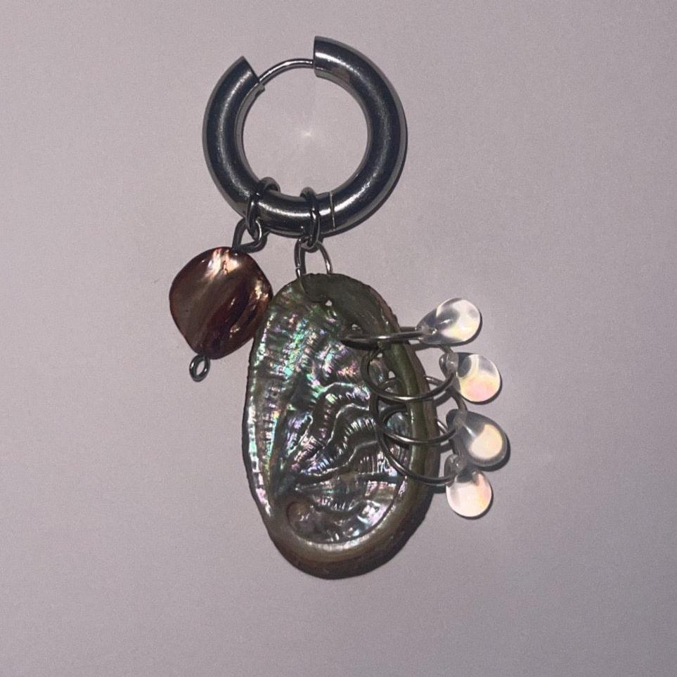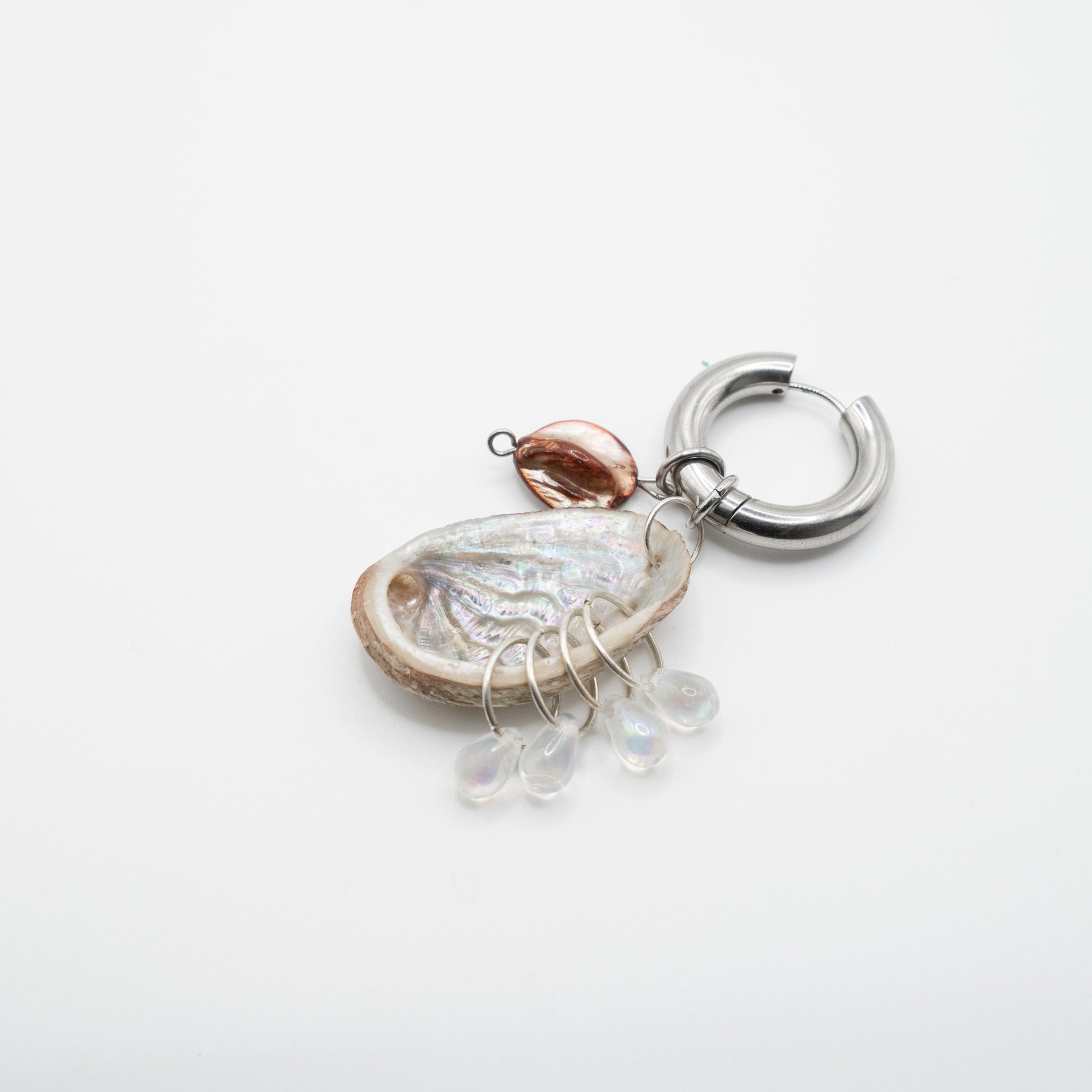 Composition : Coquillage d'Ormeau, Cristal, Perle et Acier Inoxydable.