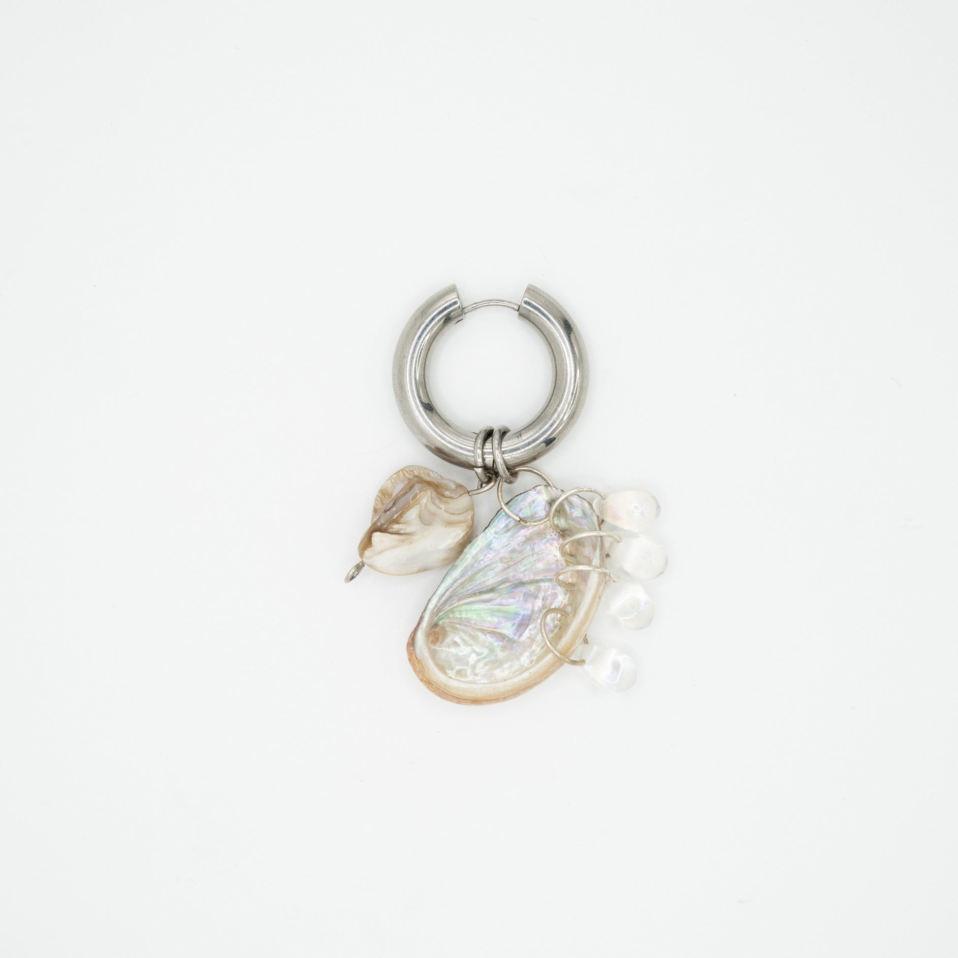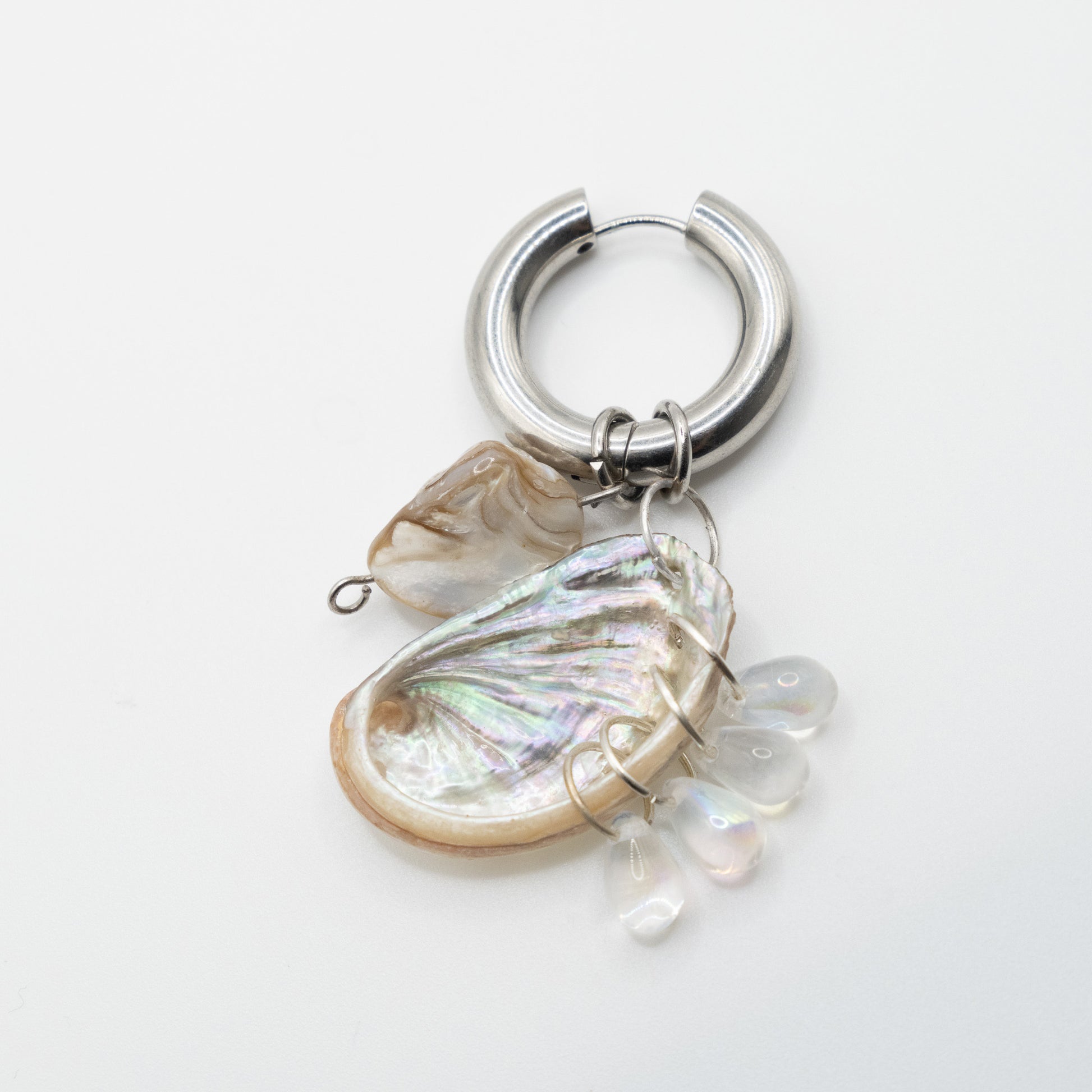 Composition : Coquillage d'Ormeau, Cristal, Perle et Acier inoxydable.